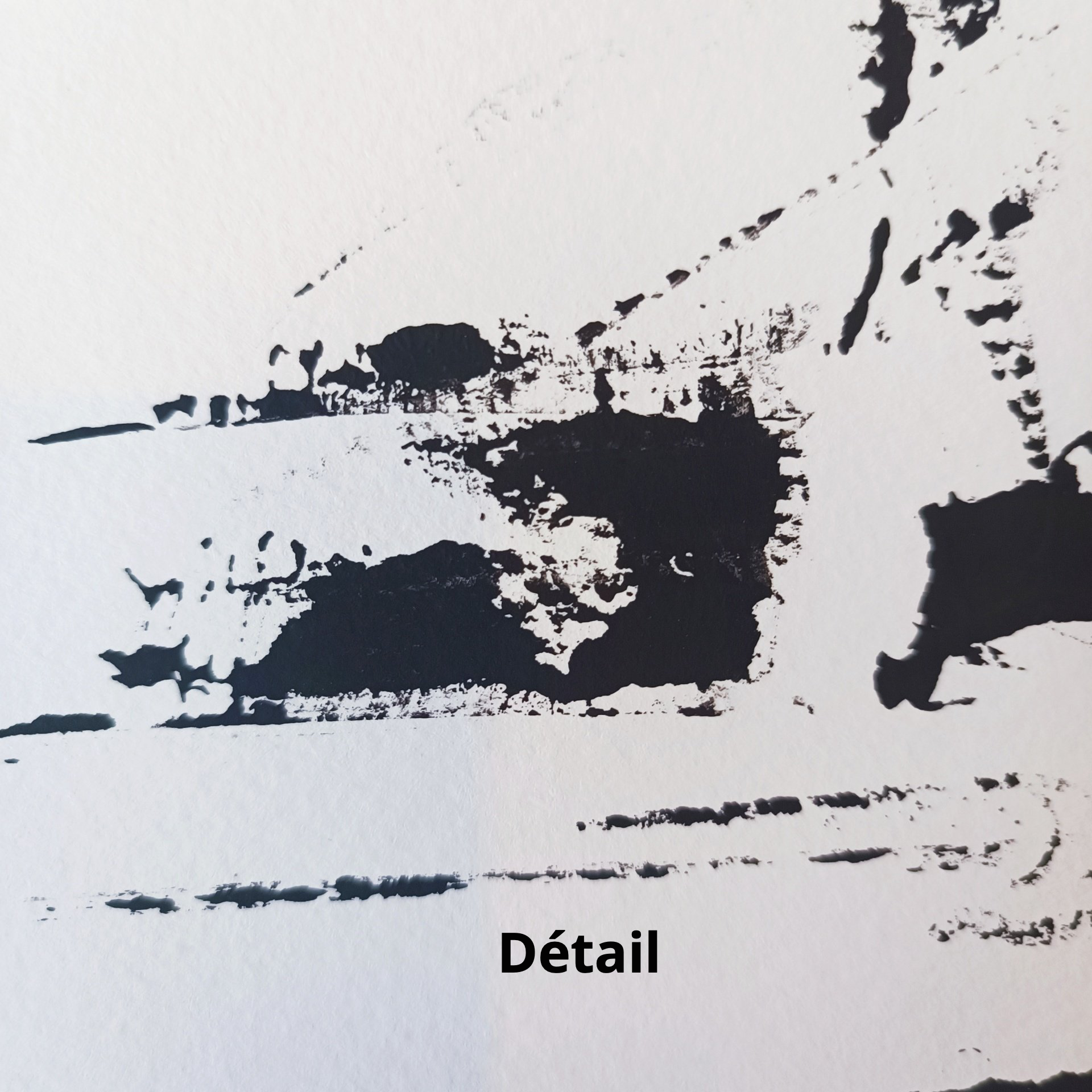 Lorsque l'effet tachisme se dissout, des formes apparaissent. Alors j'observe, je tourne la feuille, cela peut prendre une minute, une heure, un jour ou plus jusqu'à l'instant T où l'image se révèle. Celle-ci m'est propre car elle vient de moi. Chaque personne l'interprète en fonction de la personne qu'il est, à travers son propre prisme.